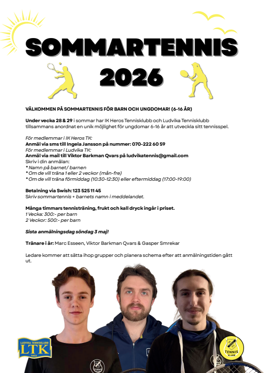 Glöm inte att anmäla dig till sommartennis 2026! Vi ser fram emot en fartfylld och rolig sommar på grusbanorna.